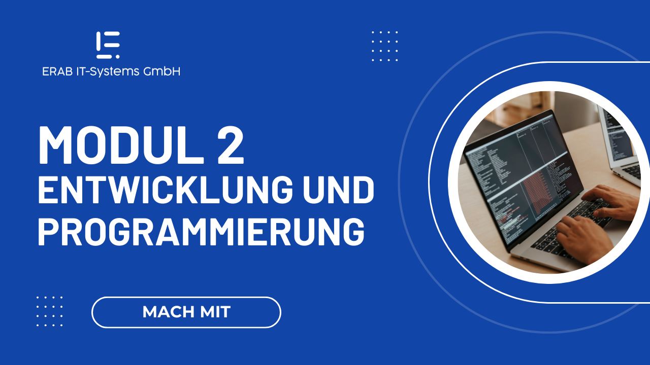 Im 2. Modul erfolgt die Vertiefung der Entwicklungs- und Programmierkenntnisse. Die Teilnehmenden erlernen die Programmiersprache sowie die praktische Umsetzung dieser z. B. bei der Entwicklung von Websites, Apps, Software sowie der künstlichen Intelligenz.